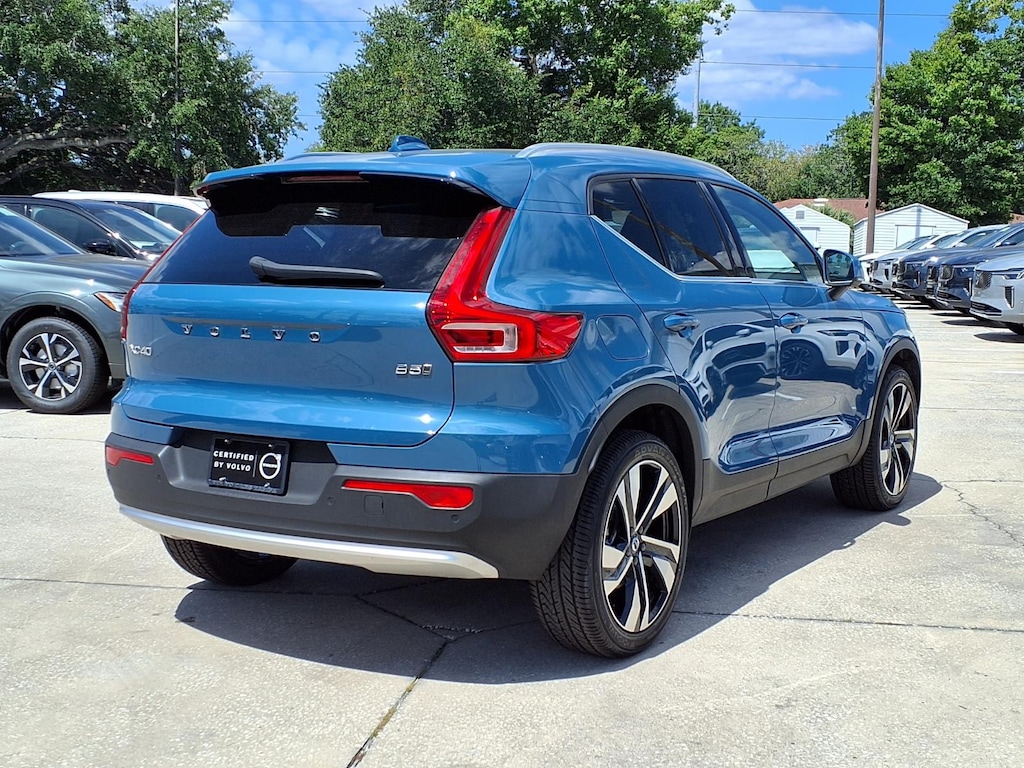 CARFAX One-Owner. VOLVO CERTIFIED, 4-Wheel Disc Brakes, 8 Speakers, ABS brakes, Air Conditioning, Alloy wheels, AM/FM Radio, AM/FM radio: SiriusXM, Apple CarPlay, Auto High-beam Headlights, Auto-dimming door mirrors, Auto-dimming Rear-View mirror, Automatic temperature control, Brake assist, Bumpers: body-color, Delay-off headlights, Driver door bin, Driver vanity mirror, Dual front impact airbags, Dual front side impact airbags, Electronic Stability Control, Emergency communication system: Volvo Cars App w/4 Year Subscription, Exterior Parking Camera Rear, Four wheel independent suspension, Front anti-roll bar, Front Bucket Seats, Front Center Armrest, Front dual zone A/C, Front fog lights, Front reading lights, Fully automatic headlights, Garage door transmitter: HomeLink, Hands-Free Power Tailgate, Heated door mirrors, Heated front seats, Illuminated entry, Internet access capable: Digital Services Package w/ 4 Year Subscription, Knee airbag, Leather Seating Surfaces, Low tire pressure warning, Memory seat, Navigation System, Occupant sensing airbag, Outside temperature display, Overhead airbag, Overhead console, Panic alarm, Passenger door bin, Passenger vanity mirror, Power door mirrors, Power driver seat, Power moonroof, Power passenger seat, Power steering, Power windows, Radio data system, Rain sensing wipers, Rear anti-roll bar, Rear fog lights, Rear reading lights, Rear seat center armrest, Rear window defroster, Rear window wiper, Remote keyless entry, Security system, Speed control, Speed-sensing steering, Split folding rear seat, Spoiler, Steering wheel mounted audio controls, Tachometer, Telescoping steering wheel, Tilt steering wheel, Traction control, Trip computer, Trunk Spoiler, Turn signal indicator mirrors, Variably intermittent wipers. 2023 Volvo XC40 B5 Plus Bright Theme Certified. Volvo Certified Pre-Owned Details: