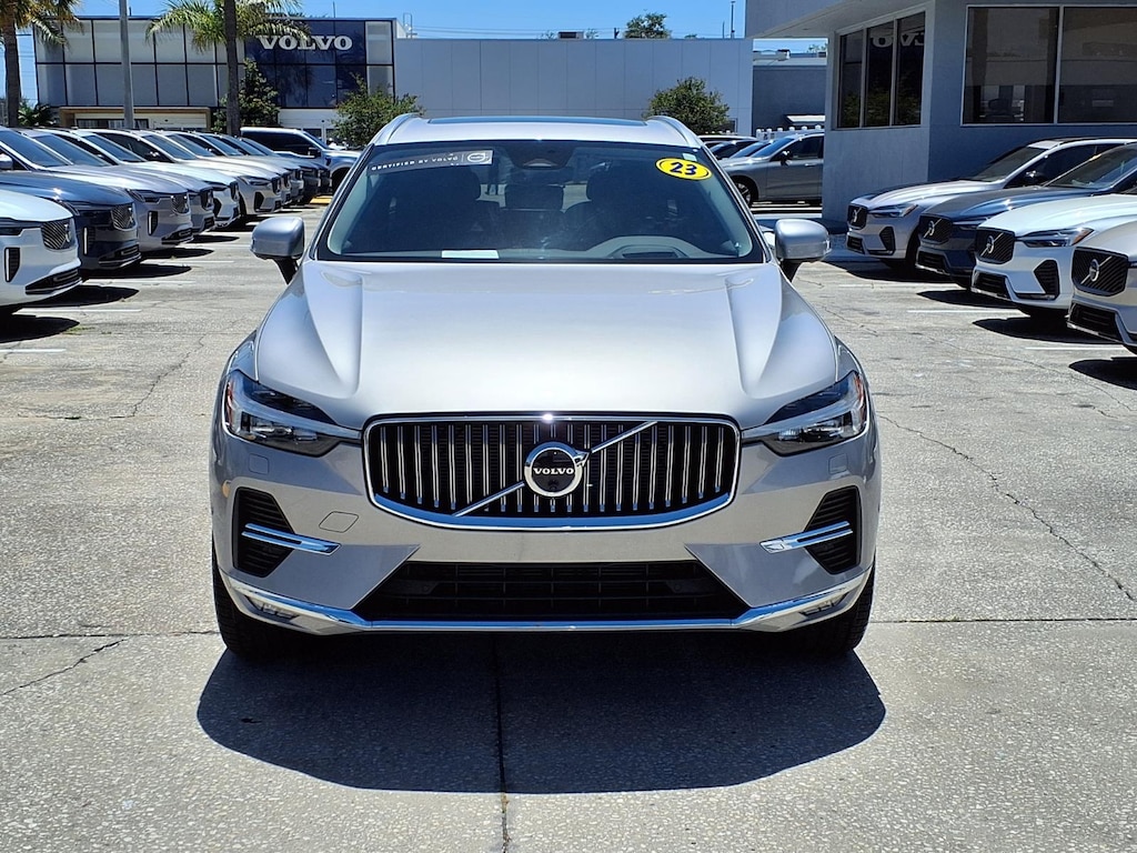 CARFAX One-Owner. VOLVO CERTIFIED, 14 Speakers, 4-Wheel Disc Brakes, ABS brakes, Air Conditioning, Alloy wheels, AM/FM radio: SiriusXM, Anti-whiplash front head restraints, Apple CarPlay, Auto High-beam Headlights, Auto-dimming door mirrors, Auto-dimming Rear-View mirror, Automatic temperature control, Brake assist, Bumper Cover, Bumpers: body-color, Cargo Tray, Climate Package, Delay-off headlights, Driver door bin, Driver vanity mirror, Dual front impact airbags, Dual front side impact airbags, Electronic Stability Control, Emergency communication system: Volvo Cars App w/4 Year Subscription, Exterior Parking Camera Rear, First Aid Kit, Four wheel independent suspension, Front anti-roll bar, Front Bucket Seats, Front Center Armrest, Front dual zone A/C, Front fog lights, Front reading lights, Fully automatic headlights, Garage door transmitter: HomeLink, Genuine wood console insert, Genuine wood dashboard insert, harman/kardon Speakers, Heads-Up Display, Heated & Ventilated Front Bucket Seats, Heated door mirrors, Heated front seats, Heated Rear Seats, Heated Steering Wheel, Illuminated entry, Knee airbag, Low tire pressure warning, Luggage Cover, Memory seat, Navigation system: Sensus Navigation, Occupant sensing airbag, Outside temperature display, Overhead airbag, Panic alarm, Passenger door bin, Passenger vanity mirror, Perforated Nappa Leather Upholstery, Polestar, Power door mirrors, Power driver seat, Power moonroof, Power Operated Tailgate, Power passenger seat, Power steering, Power windows, Protection Package Premier, Radio data system, Radio: harman/kardon Premium Audio System, Rain sensing wipers, Rear air conditioning, Rear anti-roll bar, Rear dual zone A/C, Rear fog lights, Rear reading lights, Rear seat center armrest, Rear window defroster, Rear window wiper, Remote keyless entry, Rubber Floor Mats, Security system, Speed control, Split folding rear seat, Spoiler, Steering wheel mounted audio controls, Tachometer, Telescoping steering wheel, Tilt steering wheel, Traction control, Trip computer, Turn signal indicator mirrors, Variably intermittent wipers, Ventilated front seats, Wheel Locks. 2023 Volvo XC60 B5 Ultimate Bright Theme Certified. Volvo Certified Pre-Owned Details: