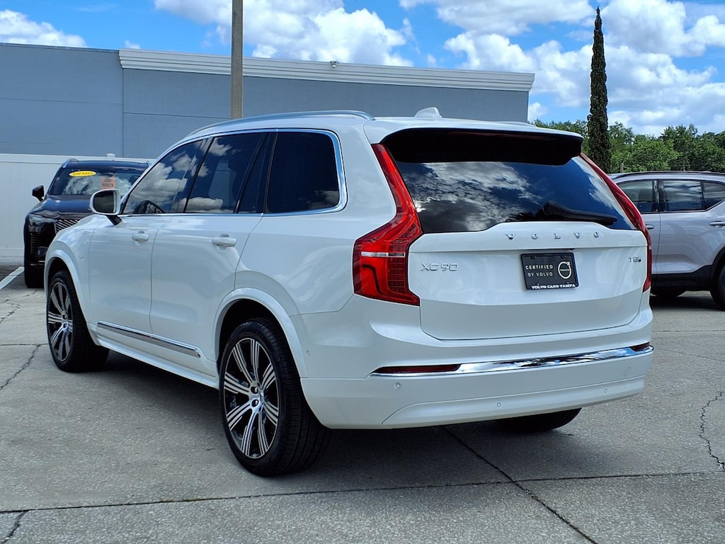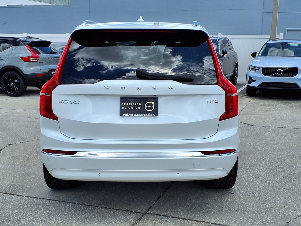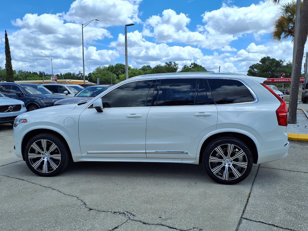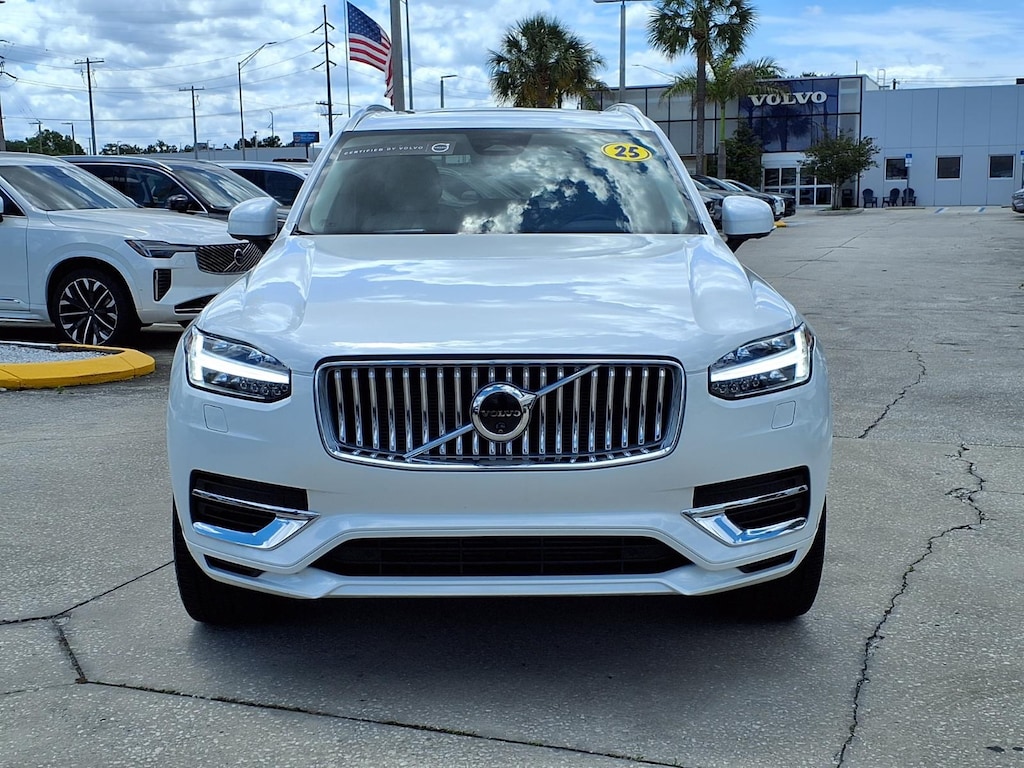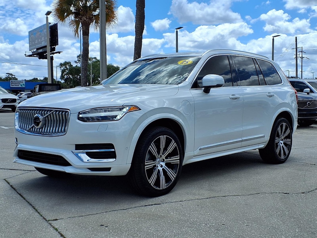 Clean CARFAX. CARFAX One-Owner. ONE OWNER, CLEAN CARFAX/NO ACCIDENTS REPORTED, VOLVO CERTIFIED, 11 Speakers, 3rd row seats: bucket, 4-Wheel Disc Brakes, ABS brakes, Air Conditioning, All-Weather Floor Mats, Alloy wheels, AM/FM radio: SiriusXM, Anti-whiplash front head restraints, Apple CarPlay, Auto High-beam Headlights, Auto-dimming door mirrors, Auto-dimming Rear-View mirror, Automatic temperature control, Brake assist, Bumper Cover, Bumpers: body-color, Cargo Tray, Delay-off headlights, Driver door bin, Driver vanity mirror, Dual front impact airbags, Dual front side impact airbags, Electronic Stability Control, Emergency communication system: Volvo Cars App w/4 Year Subscription, Exterior Parking Camera Rear, First Aid Kit, Four wheel independent suspension, Front anti-roll bar, Front Bucket Seats, Front Center Armrest w/Storage, Front dual zone A/C, Front reading lights, Fully automatic headlights, Garage door transmitter: HomeLink, Genuine wood dashboard insert, Genuine wood door panel insert, Headlight cleaning, Heated door mirrors, Heated Front Bucket Seats, Heated front seats, Heated rear seats, Heated steering wheel, Illuminated entry, Integrated rear child seats, Knee airbag, Leather Upholstery, Low tire pressure warning, Memory seat, Navigation System, Occupant sensing airbag, Outside temperature display, Overhead airbag, Panic alarm, Passenger door bin, Passenger vanity mirror, Power door mirrors, Power driver seat, Power Liftgate, Power moonroof, Power passenger seat, Power steering, Power windows, Protection Package Premier, Radio data system, Radio: High Performance Audio System, Rain sensing wipers, Rear air conditioning, Rear anti-roll bar, Rear dual zone A/C, Rear fog lights, Rear reading lights, Rear seat center armrest, Rear window defroster, Rear window wiper, Remote keyless entry, Security system, Speed control, Speed-sensing steering, Split folding rear seat, Spoiler, Steering wheel mounted audio controls, Tachometer, Telescoping steering wheel, Traction control, Trip computer, Turn signal indicator mirrors, Variably intermittent wipers, Wheel Locks. 2025 Volvo XC90 Plug-In Hybrid T8 Plus 7 Passenger Certified. Volvo Certified Pre-Owned Details:
