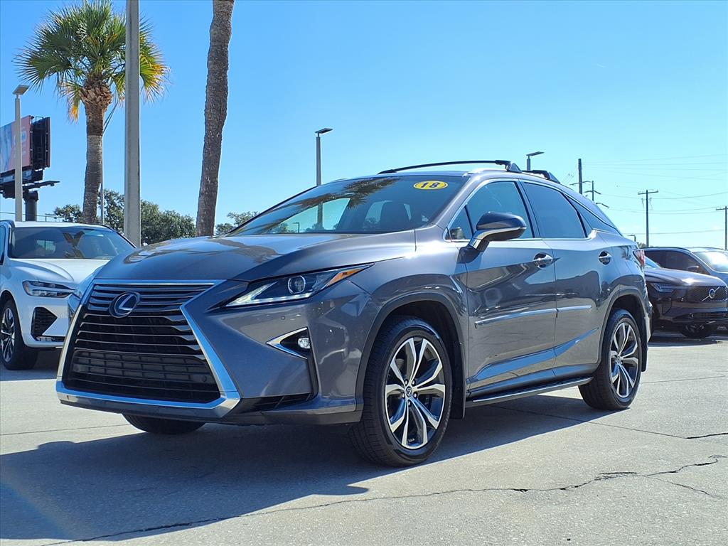 12.3 Navigation System, Blind Spot Monitor w/Rear Cross Traffic Alert, Driver Seat Memory w/3 Settings, Exterior Parking Camera Rear, Heated & Ventilated Front Seats, Leather Seat Trim, Lexus Enform App Suite, Lexus Enform Destination Assist, Power Folding Electrochromic Mirror w/Memory, Power Liftgate, Power Tilt & Slide Moonroof, Premium Package, Rear Armrest Storage Compartment, Single-Disc DVD Changer, Steering Wheel Memory, Wheels: 20 x 8 Split 5-Spoke Dark Silver. 2018 Lexus RX 350 3.5L V6 DOHC 24V AWD 8-Speed Automatic Nebula Gray Pearl