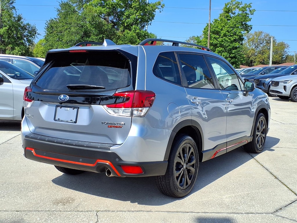 4-Wheel Disc Brakes, 6 Speakers, ABS brakes, Aero Crossbar Set, Air Conditioning, All-Weather Floor Liners, Alloy wheels, AM/FM radio: SiriusXM, Audio Sys/Drvr Ast Tech/Rev Auto Brake/Pwr Rr Gate, Auto High-beam Headlights, Auto-Dimming Exterior Mirror w/Approach Lighting, Auto-Dimming Mirror w/Compass & HomeLink, Automatic temperature control, Blind Spot Detection w/Rear Cross Traffic Alert, Brake assist, Bumpers: body-color, Cargo Net, CD player, Driver door bin, Driver vanity mirror, Dual front impact airbags, Dual front side impact airbags, Electronic Stability Control, Emergency communication system: STARLINK Safety and Security (Subscription Required), Exterior Parking Camera Rear, Four wheel independent suspension, Front anti-roll bar, Front Bucket Seats, Front Center Armrest, Front fog lights, Front reading lights, Fully automatic headlights, harman kardon 576W Amp & Speaker System, Heated door mirrors, Heated Front Bucket Seats, Heated front seats, Illuminated entry, Knee airbag, Leather Shift Knob, Low tire pressure warning, Occupant sensing airbag, Outside temperature display, Overhead airbag, Overhead console, Paddle-Shift Control Switches, Panic alarm, Passenger door bin, Passenger vanity mirror, Popular Package #2, Power door mirrors, Power driver seat, Power moonroof: Panoramic, Power Rear Gate, Power steering, Power windows, Radio data system, Radio: Subaru Starlink 6.5 Multimedia Plus System, Radio: Subaru Starlink 8.0 Multimedia Plus System, Rear anti-roll bar, Rear Bumper Cover, Rear seat center armrest, Rear window defroster, Rear window wiper, Remote keyless entry, Reverse Automatic Braking System (RAB), Roof rack: rails only, Security system, Speed control, Speed-sensing steering, Split folding rear seat, Spoiler, Sport Cloth Upholstery, STARLINK/Apple CarPlay/Android Auto, Steering wheel mounted audio controls, Tachometer, Telescoping steering wheel, Tilt steering wheel, Traction control, Trip computer, Turn signal indicator mirrors, Variably intermittent wipers. 2020 Subaru Forester Sport 2.5L 4-Cylinder DOHC 16V VVT AWD Lineartronic CVT Ice Silver Metallic