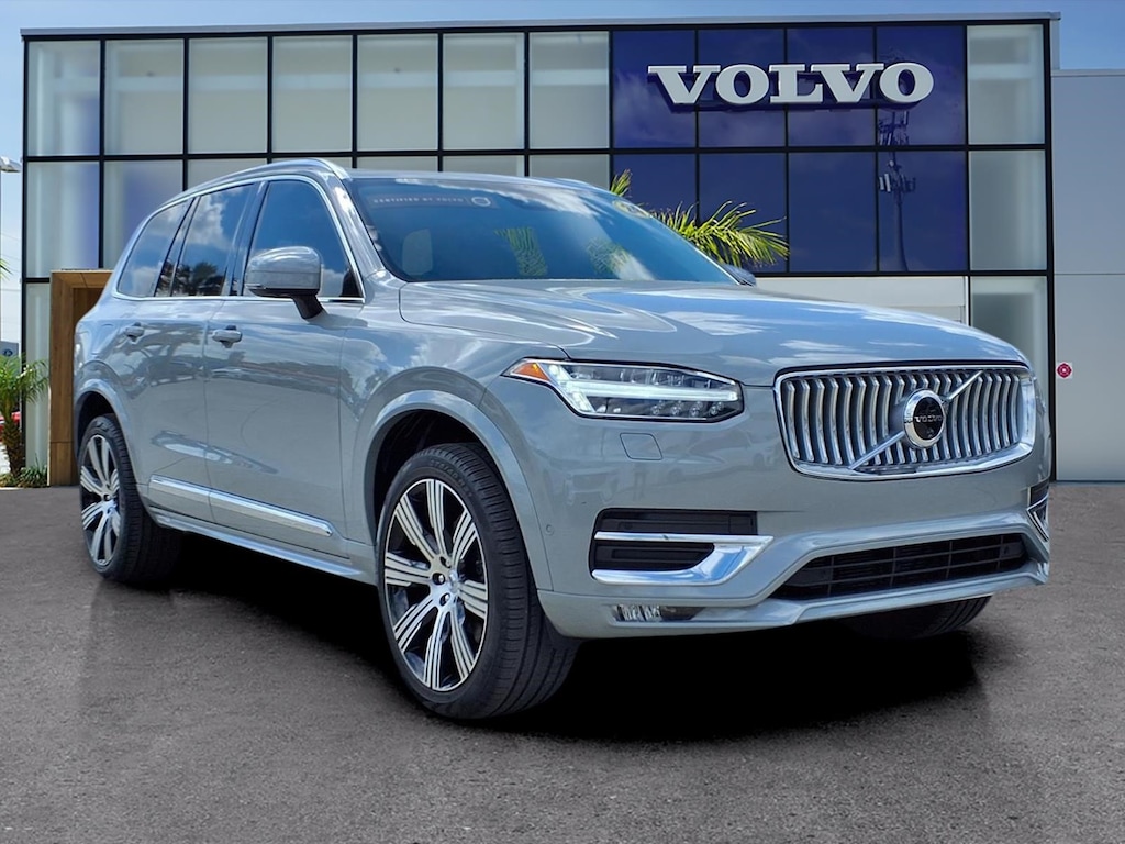 CARFAX One-Owner. CLEAN CARFAX/NO ACCIDENTS REPORTED, VOLVO CERTIFIED, 10 Speakers, 3rd row seats: bucket, 4-Wheel Disc Brakes, ABS brakes, Air Conditioning, All-Weather Floor Mats, Alloy wheels, AM/FM radio: SiriusXM, Anti-whiplash front head restraints, Apple CarPlay, Auto High-beam Headlights, Auto-dimming door mirrors, Auto-dimming Rear-View mirror, Automatic temperature control, Brake assist, Bumper Cover, Bumpers: body-color, Cargo Tray, Delay-off headlights, Driver door bin, Driver vanity mirror, Dual front impact airbags, Dual front side impact airbags, Electronic Stability Control, Emergency communication system: Volvo Cars App w/4 Year Subscription, Exterior Parking Camera Rear, First Aid Kit, Four wheel independent suspension, Front anti-roll bar, Front Bucket Seats, Front Center Armrest w/Storage, Front dual zone A/C, Front fog lights, Front reading lights, Fully automatic headlights, Garage door transmitter: HomeLink, Genuine wood dashboard insert, Genuine wood door panel insert, harman/kardon Premium Sound, Headlight cleaning, Heated door mirrors, Heated Front Bucket Seats, Heated front seats, Heated rear seats, Heated steering wheel, Illuminated entry, Integrated rear child seats, Knee airbag, Leather Shift Knob, Leather Upholstery, Low tire pressure warning, Memory seat, Navigation System, Occupant sensing airbag, Outside temperature display, Overhead airbag, Panic alarm, Passenger door bin, Passenger vanity mirror, Power door mirrors, Power driver seat, Power Liftgate, Power moonroof, Power passenger seat, Power steering, Power windows, Protection Package Premier, Radio data system, Radio: High Performance Audio System, Rain sensing wipers, Rear air conditioning, Rear anti-roll bar, Rear dual zone A/C, Rear fog lights, Rear reading lights, Rear seat center armrest, Rear window defroster, Rear window wiper, Remote keyless entry, Security system, Speed control, Speed-sensing steering, Split folding rear seat, Spoiler, Steering wheel mounted audio controls, Tachometer, Telescoping steering wheel, Traction control, Trip computer, Turn signal indicator mirrors, Variably intermittent wipers, Wheel Locks. 2024 Volvo XC90 B5 Plus Certified. Volvo Certified Pre-Owned Details: